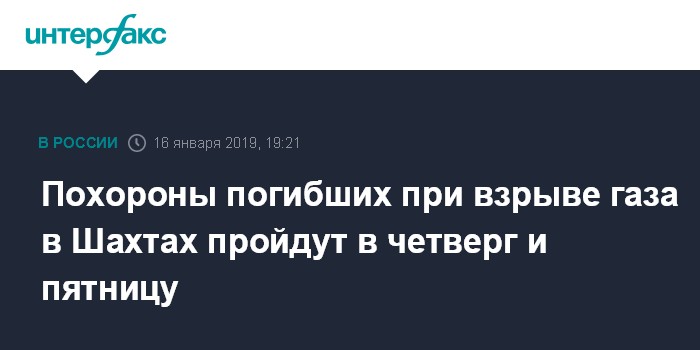 Москва. 16 января. INTERFAX.RU - Пятерых жертв взрыва бытового газа в многоэтажном доме в Шахтах похоронят 17 и 18 января, сообщает пресс-служба администрации города.