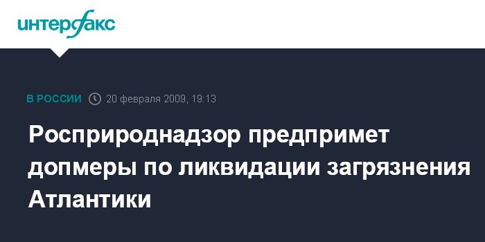 Москва. 20 февраля. INTERFAX.RU - В Росприроднадзоре планируют направить дополнительные средства для ликвидации последствий разлива нефтепродуктов в Атлантике, сообщили в пресс-службе Росприроднадзора в пятницу.
