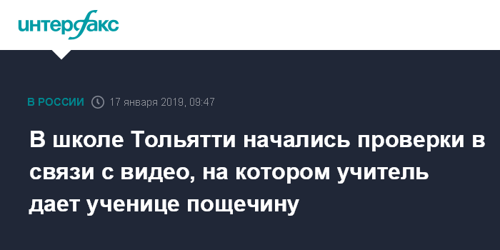 Москва. 17 января. INTERFAX.RU - Министерство образования и науки Самарской области начало служебную проверку после размещения в интернете видео, на котором учитель одной из школ Тольятти бьет пятиклассницу по лицу.