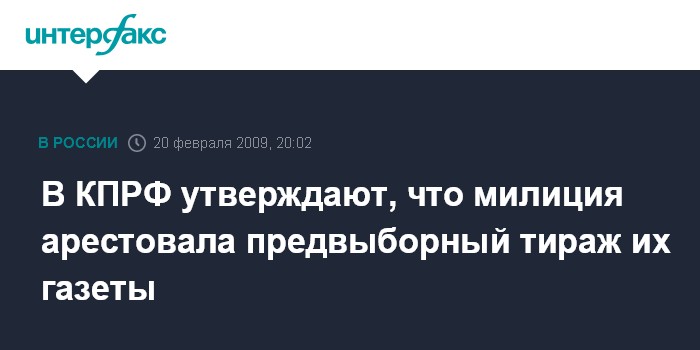 Северодвинск (Архангельская область). 20 февраля. INTERFAX.RU - В Северодвинске Архангельской области арестован тираж агитационных материалов, подготовленных КПРФ в связи с предстоящими 1 марта выборами в Законодательное Собрание области.