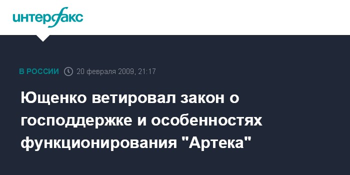 Киев. 20 февраля. INTERFAX.RU - Президент Украины Виктор Ющенко вернул в парламент для повторного рассмотрения закон о государственной поддержке и особенностях функционирования детских центров "Артек" и "Молодая гвардия".