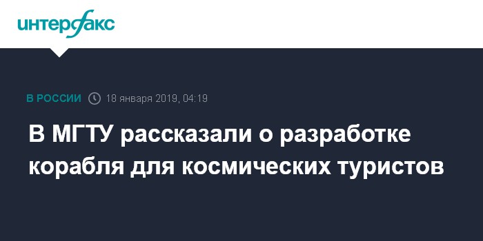 Москва. 18 января. INTERFAX.RU - В МГТУ имени Баумана разрабатывают суборбитальный корабль для космических туристов, говорится в тезисах одного из докладов, подготовленных к Королёвским чтениям.