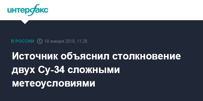 Москва. 18 января. INTERFAX.RU - Авария бомбардировщиков Су-34 на Дальнем Востоке произошла во время выполнения полета в сложных погодных условиях, сообщил "Интерфаксу" информированный источник.