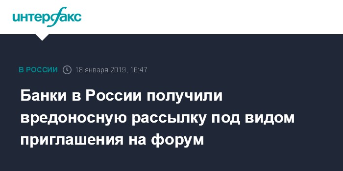 Банки в России получили вредоносную рассылку под видом приглашения на форум