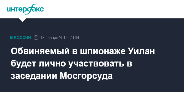 Обвиняемый в шпионаже Уилан будет лично участвовать в заседании Мосгорсуда