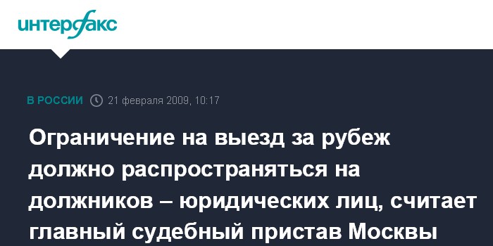 "Как достаточно эффективная, данная мера (запрет на выезд за границу должникам - ИФ) должна применяться не только в отношении физических лиц, но и юридических, которые уходят от уплаты налогов", - заявил "Интерфаксу" глава судебных приставов Москвы.