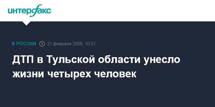 Москва. 21 февраля. INTERFAX.RU - В Тульской области на федеральной трассе "Крым" в результате дорожной аварии погибли четыре человека, сообщил "Интерфаксу" в субботу источник в правоохранительных органах.