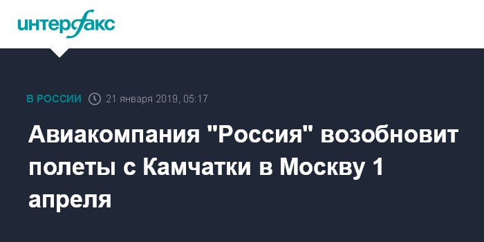 Авиакомпания "Россия" возобновит полеты с Камчатки в Москву 1 апреля