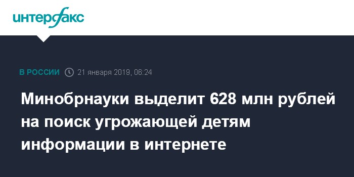 Минобрнауки выделит 628 млн рублей на поиск угрожающей детям информации в интернете