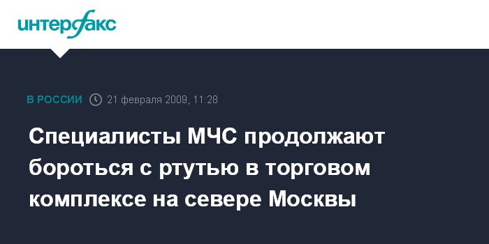 Москва. 21 февраля.INTERFAX.RU - Превышение предельно допустимых концентраций (ПДК) ртути обнаружено в подвальной части торгового комплекса на Правобережной улице на севере Москвы, сообщил начальник пресс-службы ГУ МЧС по Москве Евгений Бобылев "Интерфаксу" в субботу.