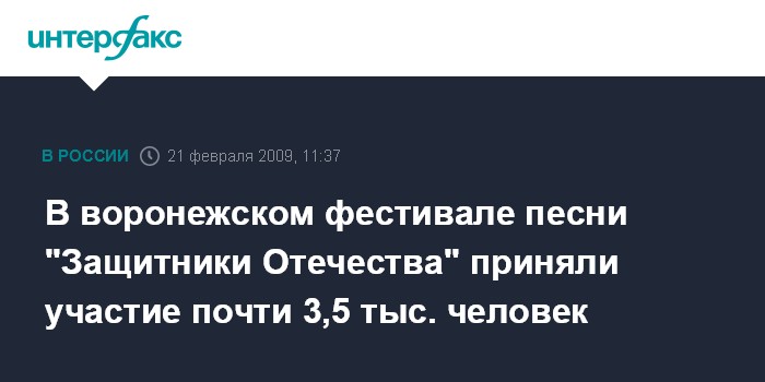 Воронеж. 21 февраля. INTERFAX.RU - Гала-концертом победителей завершится в воскресенье в Воронеже городской фестиваль солдатской и патриотической песни "Защитники Отечества", сообщили "Интерфаксу" в горуправлении культуры.