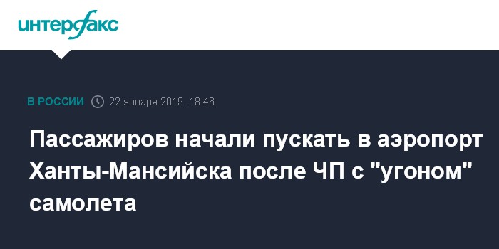 Ранее во вторник один из пассажиров авиарейса "Аэрофлота" Сургут - Москва, 41-летний гражданин РФ, в полете потребовал развернуть лайнер и направить его в Афганистан. По данным СК, злоумышленник был пьян и угрожал экипажу оружием. Командир воздушного судна принял решение совершить вынужденную посадку в Ханты-Мансийске, где злоумышленника задержали сотрудники спецслужб.