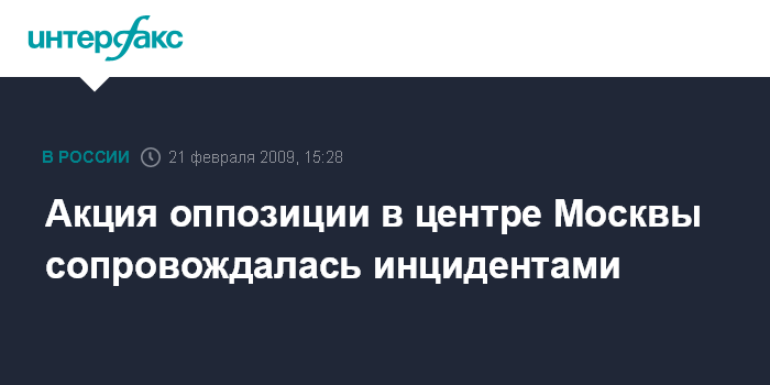 Москва. 21 февраля. INTERFAX.RU - Митинг оппозиционного движения "Солидарность", который проходит в субботу у памятника Грибоедову на Чистопрудном бульваре в Москве, сопровождается инцидентами, связанными с действиями противников митингующих.