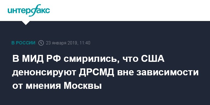 В МИД РФ смирились, что США денонсируют ДРСМД вне зависимости от мнения Москвы