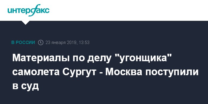 Москва. 23 января. INTERFAX.RU - Материалы уголовного дела о попытке угона самолета компании "Аэрофлот", летевшего во вторник рейсом Сургут -Москва", поступили в Ханты-Мансийский районный суд Ханты-Мансийского автономного округа - Югры.