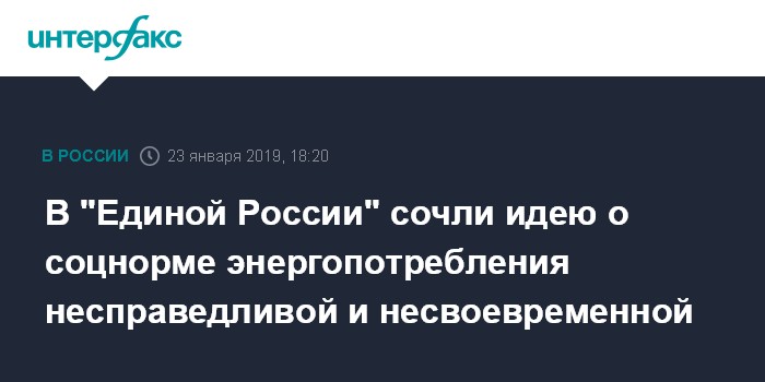 Москва. 23 января. INTERFAX.RU - В "Единой России" усомнились в целесообразности реализации идеи о введении социальной нормы потребления электроэнергии.