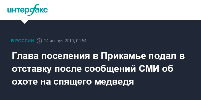Глава поселения в Прикамье подал в отставку после сообщений СМИ об охоте на спящего медведя