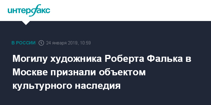 Москва. 24 января. INTERFAX.RU - Могилу художника Роберта Фалька (1886-1958) на Калитниковском кладбище в Москве признали выявленным объектом культурного наследия, сообщается в четверг на сайте столичной мэрии.