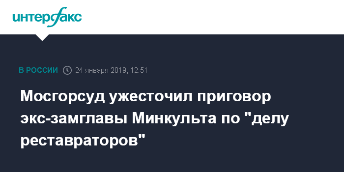 Мосгорсуд ужесточил приговор экс-замглавы Минкульта по "делу реставраторов"
