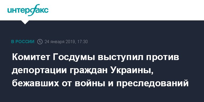 Москва. 24 января. INTERFAX.RU - Комитет Госдумы по делам СНГ, евразийской интеграции и связям с соотечественниками считает недопустимой депортацию с территории РФ граждан Украины, бежавших в Россию от войны и преследований по политическим мотивам.