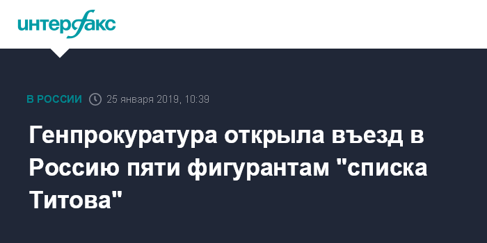 Генпрокуратура открыла въезд в Россию пяти фигурантам "списка Титова"