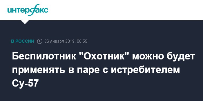 "Предполагается, что "Охотник" сможет работать в связке с истребителем Су-57. То есть одна из задач беспилотника - прорвать противовоздушную оборону, а затем уже в периметр входит пилотируемый самолет", - сказал собеседник агентства.