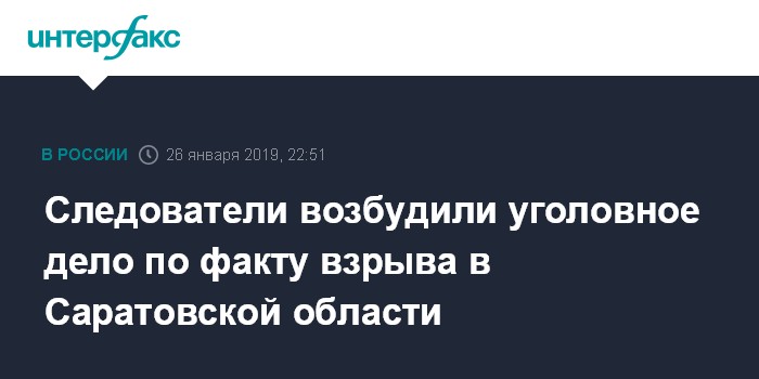 Следователи возбудили уголовное дело по факту взрыва в Саратовской области