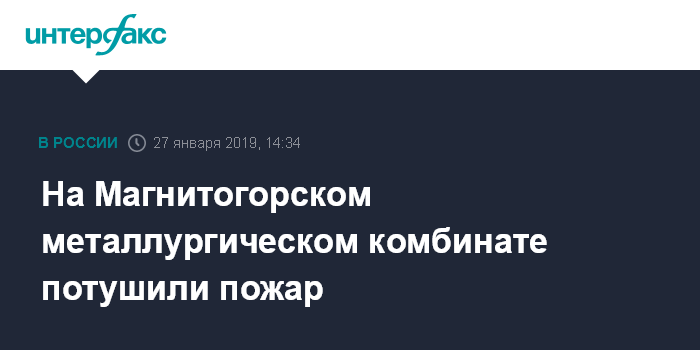 Москва. 27 января. INTERFAX.RU - Спасатели полностью потушили пожар на Магнитогорском металлургическом комбинате (ММК), сообщили "Интерфаксу" в пресс-службе ГУ МЧС по Челябинской области в воскресенье.