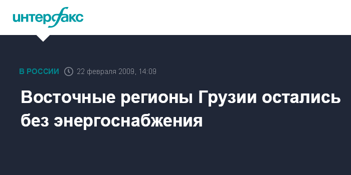 Тбилиси. 22 февраля. INTERFAX.RU - В результате аварии, произошедшей в воскресенье в энергосистеме Грузии, к 14:00 мск без энергоснабжения остались почти все восточные регионы страны, в том числе Тбилиси, сообщили "Интерфаксу" в ООО "Государственная электросистема Грузии".
