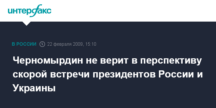 Хабаровск. 22 февраля. INTERFAX.RU - Посол России на Украине Виктор Черномырдин считает, что объективных предпосылок для возможной встречи глав государств России и Украины в ближайшем будущем не предвидится.