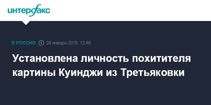 Москва. 28 января. INTERFAX.RU - Установлена личность мужчины, подозреваемого в похищении картины Архипа Куинджи "Ай-Петри. Крым" из Третьяковской галереи, сообщил "Интерфаксу" информированный источник.