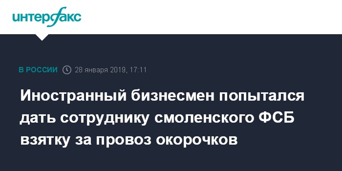 Москва. 28 января. INTERFAX.RU - В Смоленске вынесли приговор директору иностранной фирмы, который дал взятку в 300 тысяч рублей сотруднику ФСБ в обмен на беспрепятственный провоз американских окорочков, сообщает в понедельник областное управление СК.