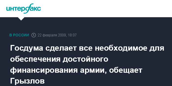Госдума сделает все необходимое для обеспечения достойного финансирования армии, обещает Грызлов