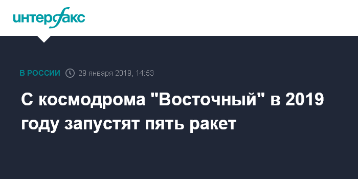"Роскосмос" сорвал сроки строительства космодрома "Восточный" и попросил еще денегЧитать подробнее"На 2019 год запланировано пять пусков - больше, чем за всю историю эксплуатации этого молодого космодрома", - говорится в январском номере журнала, издаваемого госкорпорацией "Роскосмос".