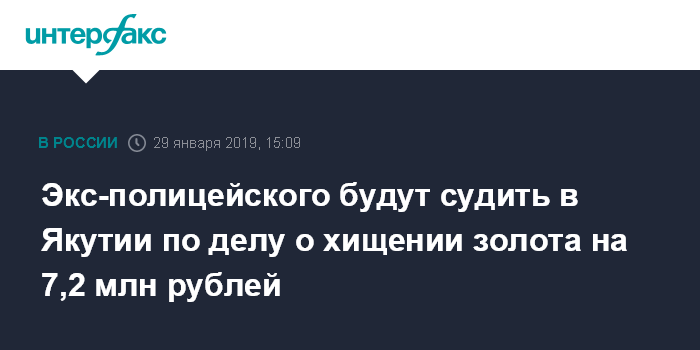 Экс-полицейского будут судить в Якутии по делу о хищении золота на 7,2 млн рублей