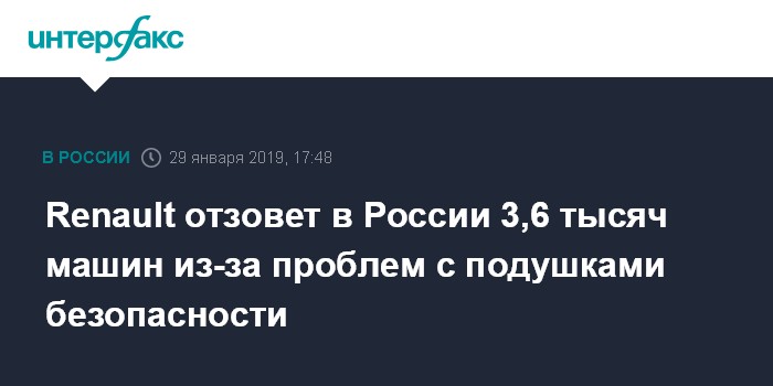 Renault отзовет в России 3,6 тысяч машин из-за проблем с подушками безопасности