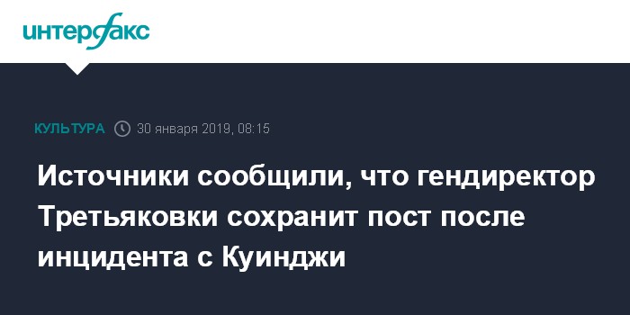 Источники сообщили, что гендиректор Третьяковки сохранит пост после инцидента с Куинджи