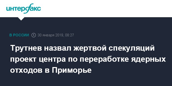 "Насколько я знаю, руководство "Росатома" хочет сейчас этот проект свернуть. Стоить это будет минус 3,2 миллиарда для экономики Приморья, минус 300 рабочих мест, и гадость (ядерные отходы - ИФ) останется надолго, потому что удастся ли потом вернуть финансирование, я уже не знаю", - сообщил Трутнев.