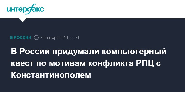 В России придумали компьютерный квест по мотивам конфликта РПЦ с Константинополем