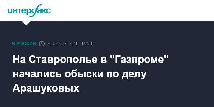 Москва. 30 января. INTERFAX.RU - Обыски по делу сенатора Рауфа Арашукова и его отца проходят в структурах ПАО "Газпром" в Ставропольском крае, сообщил "Интерфаксу" осведомленный источник.
