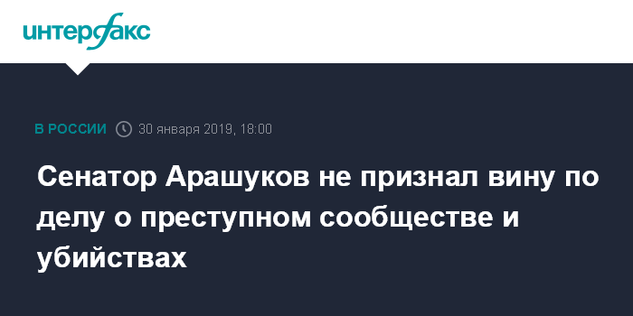 Москва. 30 января. INTERFAX.RU - Член Совета Федерации Рауф Арашуков, обвиняемый в участии в организованном преступном сообществе и убийствах, не признает свою вину, сообщил "Интерфаксу" его адвокат Евгений Устин.