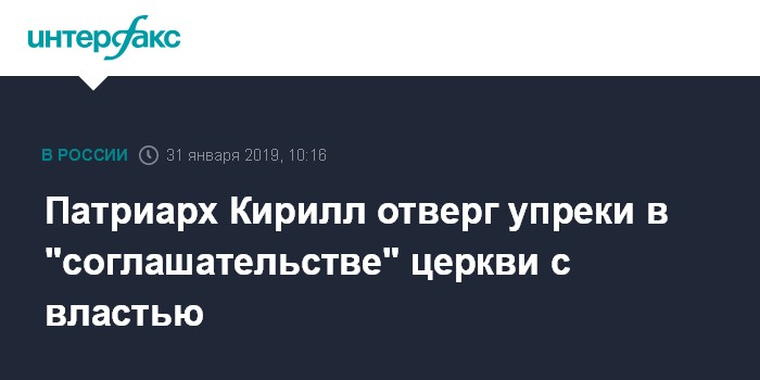 Москва. 31 января. INTERFAX.RU - Патриарх Московский и всея Руси Кирилл не согласен с теми, кто считает, что Русская православная церковь сегодня избегает полемики с руководством России относительно тем, волнующих общество.