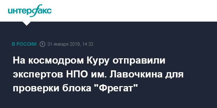 Москва. 31 января. INTERFAX.RU - Специалисты НПО имени Лавочкина, изготовившего разгонный блок "Фрегат", вылетают на космодром Куру для дополнительных испытаний блока, точная дата нового запуска будет известна через два дня, сообщили журналистам в четверг в госкорпорации "Роскосмос".