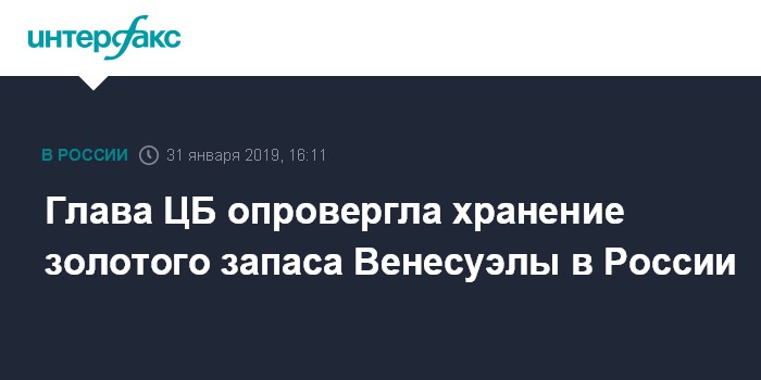 Москва. 31 января. INTERFAX.RU - Венесуэла не хранила в России свой золотой запас, заявила глава ЦБ РФ Эльвира Набиуллина.