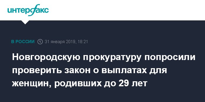 Новгородскую прокуратуру попросили проверить закон о выплатах для женщин, родивших до 29 лет