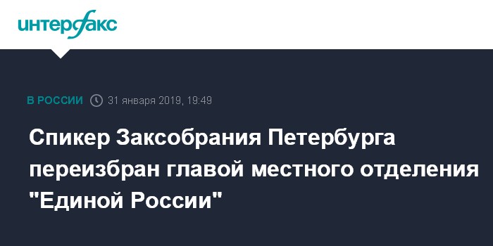 Спикер Заксобрания Петербурга переизбран главой местного отделения "Единой России"