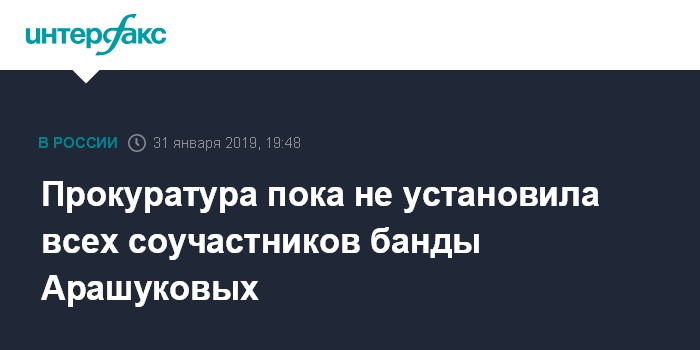 Москва. 31 января. INTERFAX.RU - Не все участники преступного сообщества, созданного сенатором Рауфом Арашуковым и его отцом Раулем, установлены, сообщил прокурор.