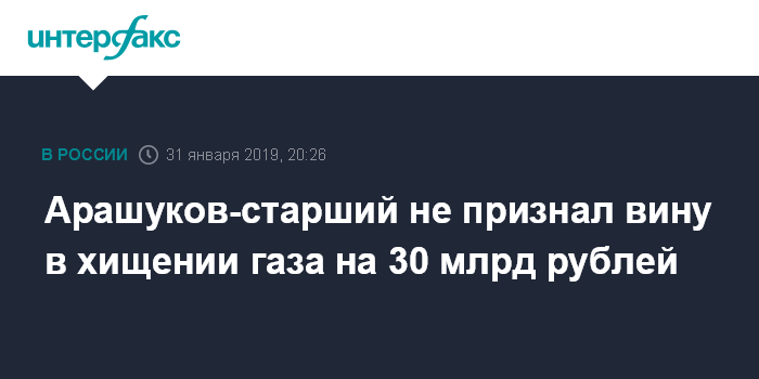 Москва. 31 января. INTERFAX.RU - Советник генерального директора ООО "Газпром межрегионгаз" Рауль Арашуков (отец сенатора Рауфа Арашукова), задержанный по делу об организации преступного сообщества и хищении газа на 30 млрд рублей, отказался признать свою вину, передал корреспондент "Интерфакса".
