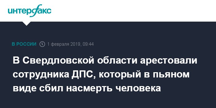 Москва. 1 февраля. INTERFAX.RU - Сотрудника ДПС Свердловской области, который насмерть сбил 57-летнего мужчину, арестовали, сообщил "Интерфаксу" руководитель пресс-службы ГУ МВД по региону Валерий Горелых.