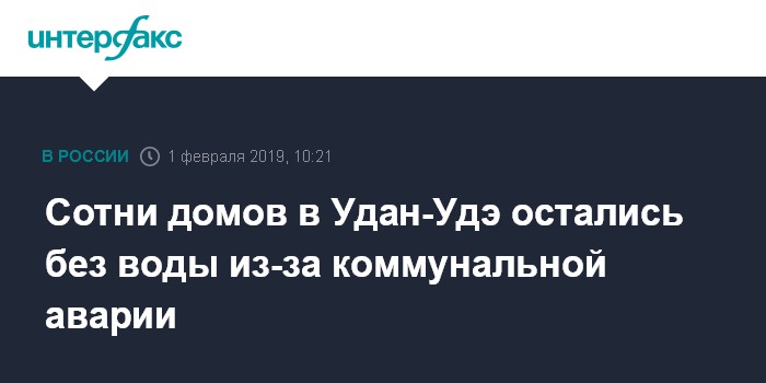 Москва. 1 февраля. INTERFAX.RU - Сотни домов в Улан-Удэ остались без воды и тепла из-за прорыва водопровода, сообщили в пятницу власти города.